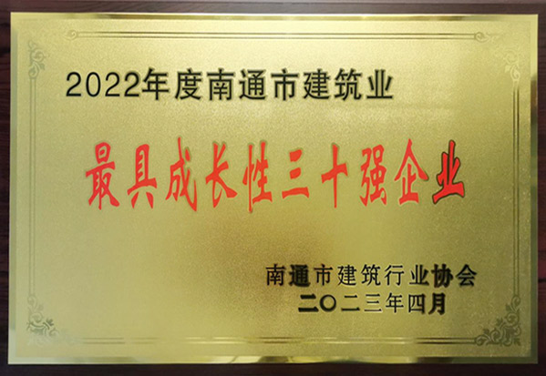 4月7日,南通市建筑行業協會2023年會暨六屆四次理事會在金石國際大酒店隆重召開。會上發布了2022年度南通市建筑業企業“雙三十強”及“三優”的評價結果,我公司獲評2022年度南通市建筑業最具成長性三十強企業。