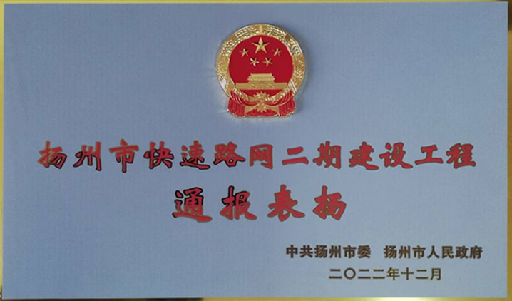 我公司參與承建的揚州市快速路網二期建設工程獲中共揚州市委、揚州市人民政府通報表揚!