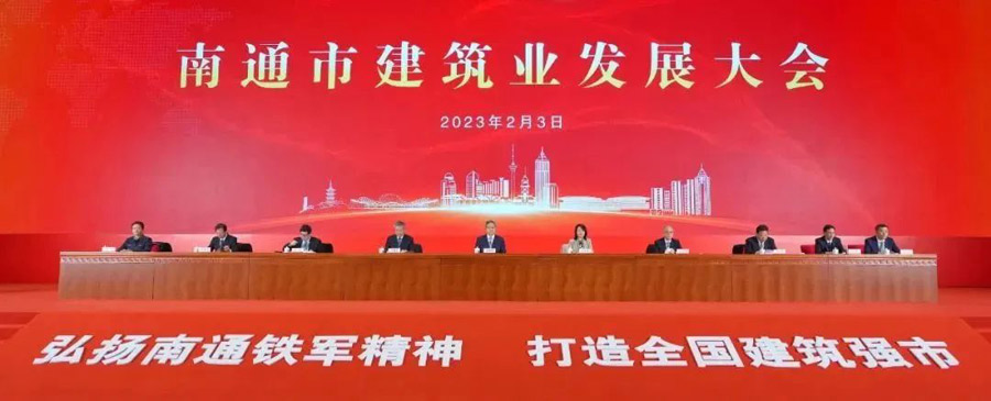 2023年2月3日上午,市委市政府召開全市建筑業發展大會,深入學習貫徹黨的二十大精神和中央經濟工作會議精神,進一步堅定全市建筑業發展信心,全面促進我市建筑業持續健康平穩發展,再創南通建筑業黃金時代的強大合力。