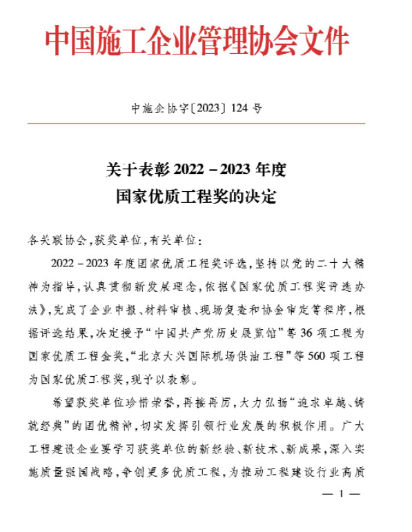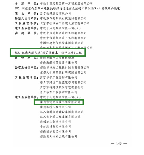 近日,中國施工企業管理協會發布2022-2023年國家優質工程獎名單,我公司參建的江海大道東延(綜藝集團東-揚子江路)工程登榜。
